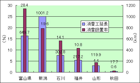 消雪装置には色々な種類がありますが、国道に設置しているタイプでは、