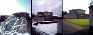 祖父母の家の玄関先です。左側が去年、右側が今年の元旦です。